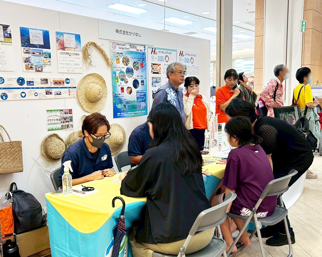 また、赤土流出防止のために植えられる「ベチパー」を活用したミサンガ作り体験などの参加型ブースをはじめとした展示ブースも人気を集め、来場者は楽しみながら県内のSDGsの取り組みに触れることができました。