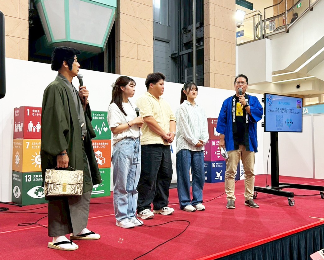 本イベントは、「SDGsを県民とともに楽しみ・考える」ことをテーマに、沖縄県内の企業・団体によるパネル展示や取組事例の紹介をはじめ、MCの護得久栄昇さん、仲座先輩による軽快なトークステージなど、多彩なプログラムを展開しました。さらに学生による演舞やSDGs活動の発表も行われ、若い世代のSDGsに対する熱意が会場を盛り上げました。