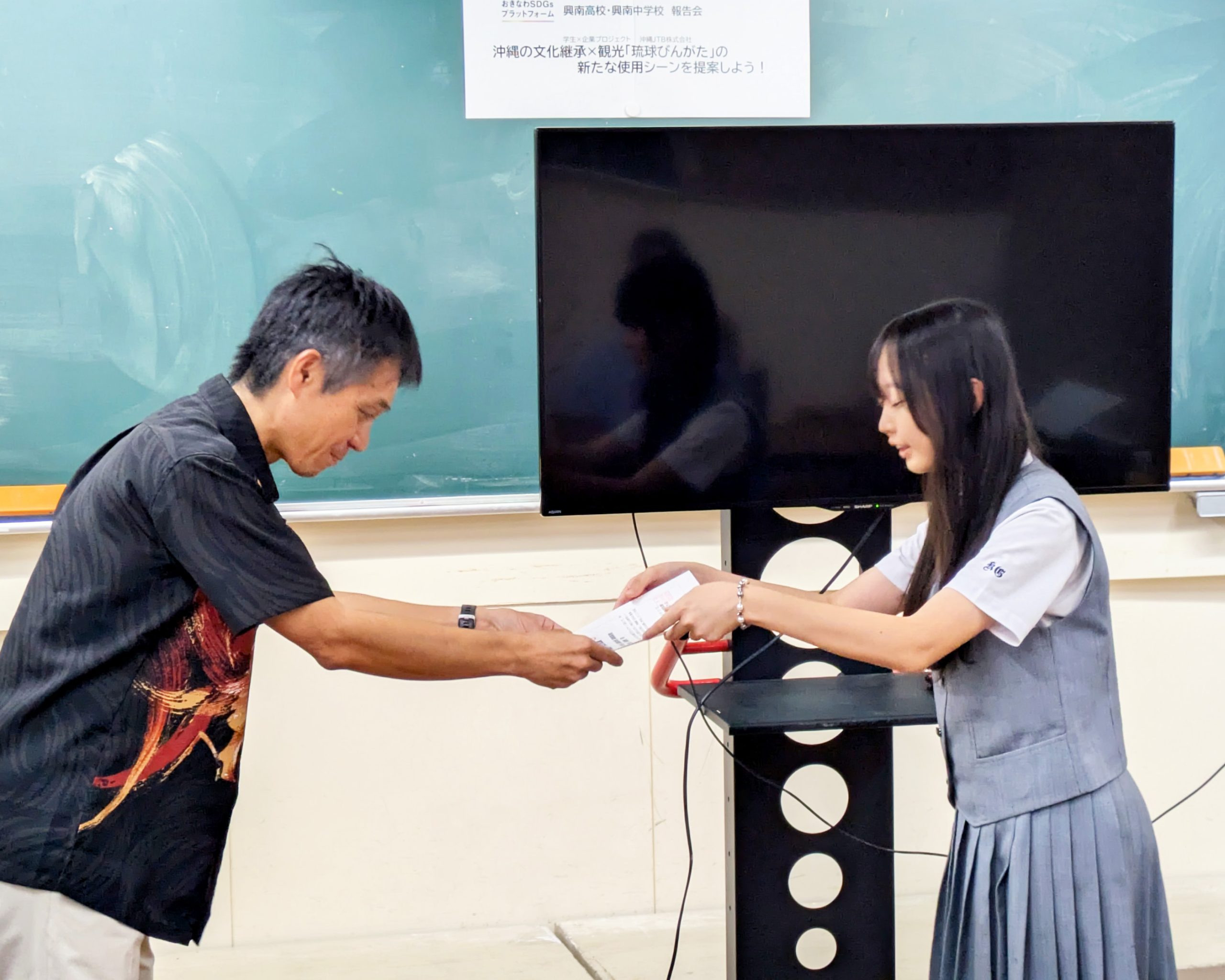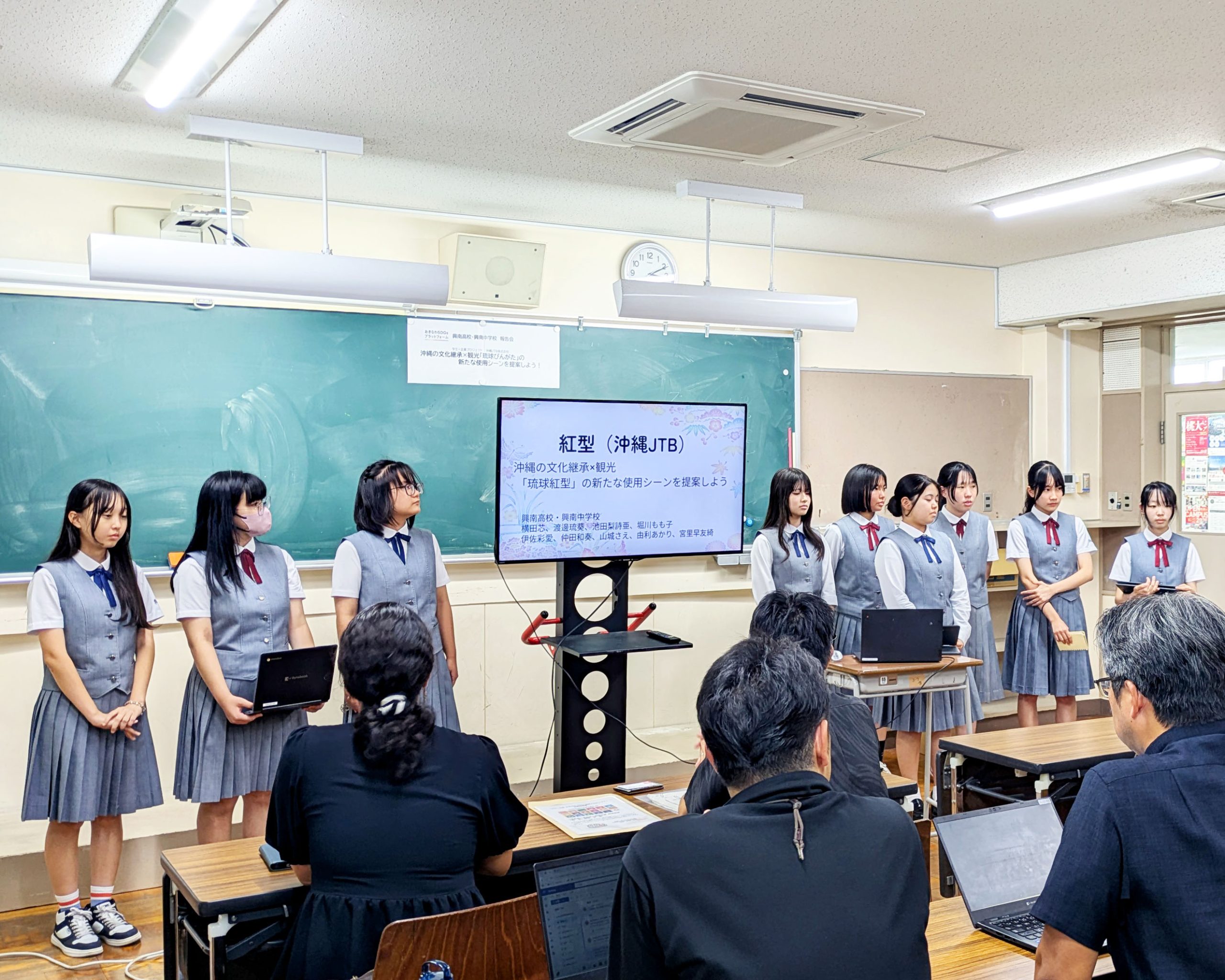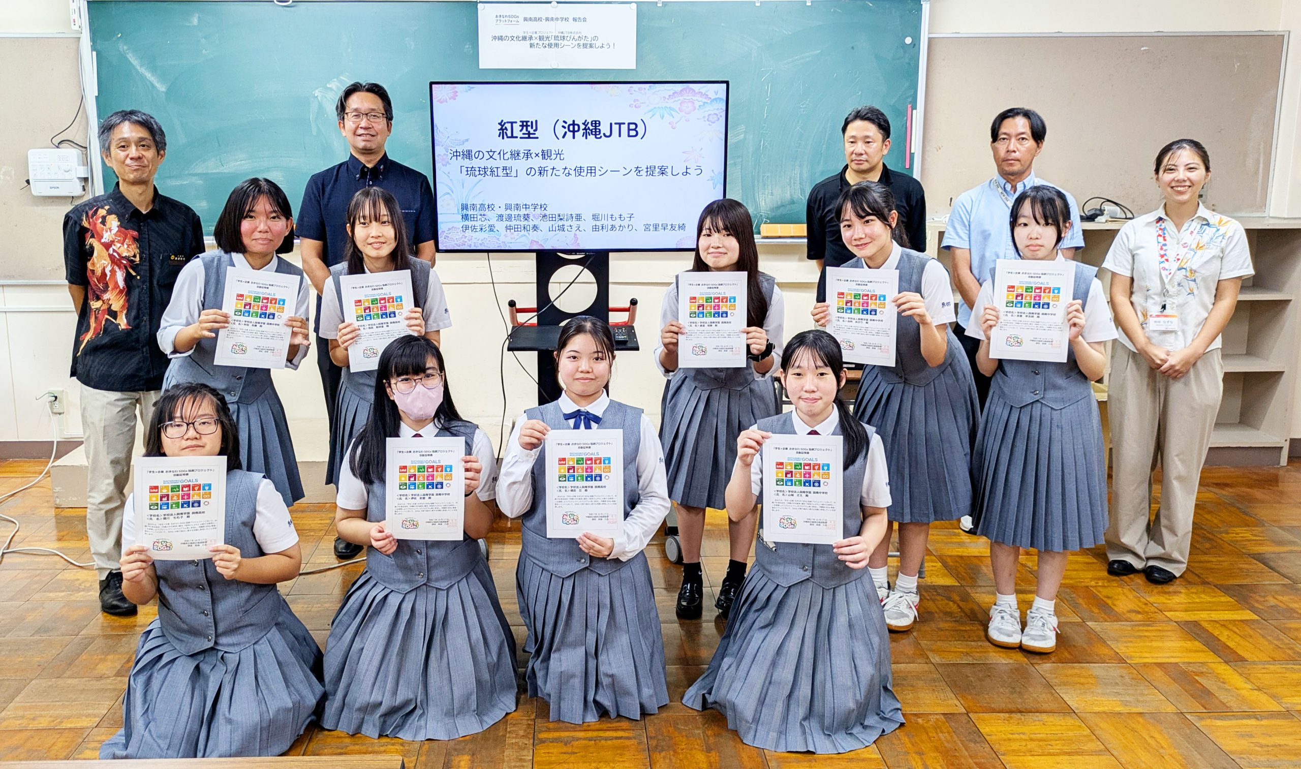 プロジェクトに参加する企業の一つ「沖縄JTB株式会社」は、興南中学・高校の学生とともに、琉球びんがたの新たな使用シーンの提案を通した沖縄の文化継承の課題に取り組みました