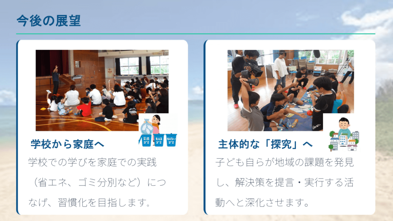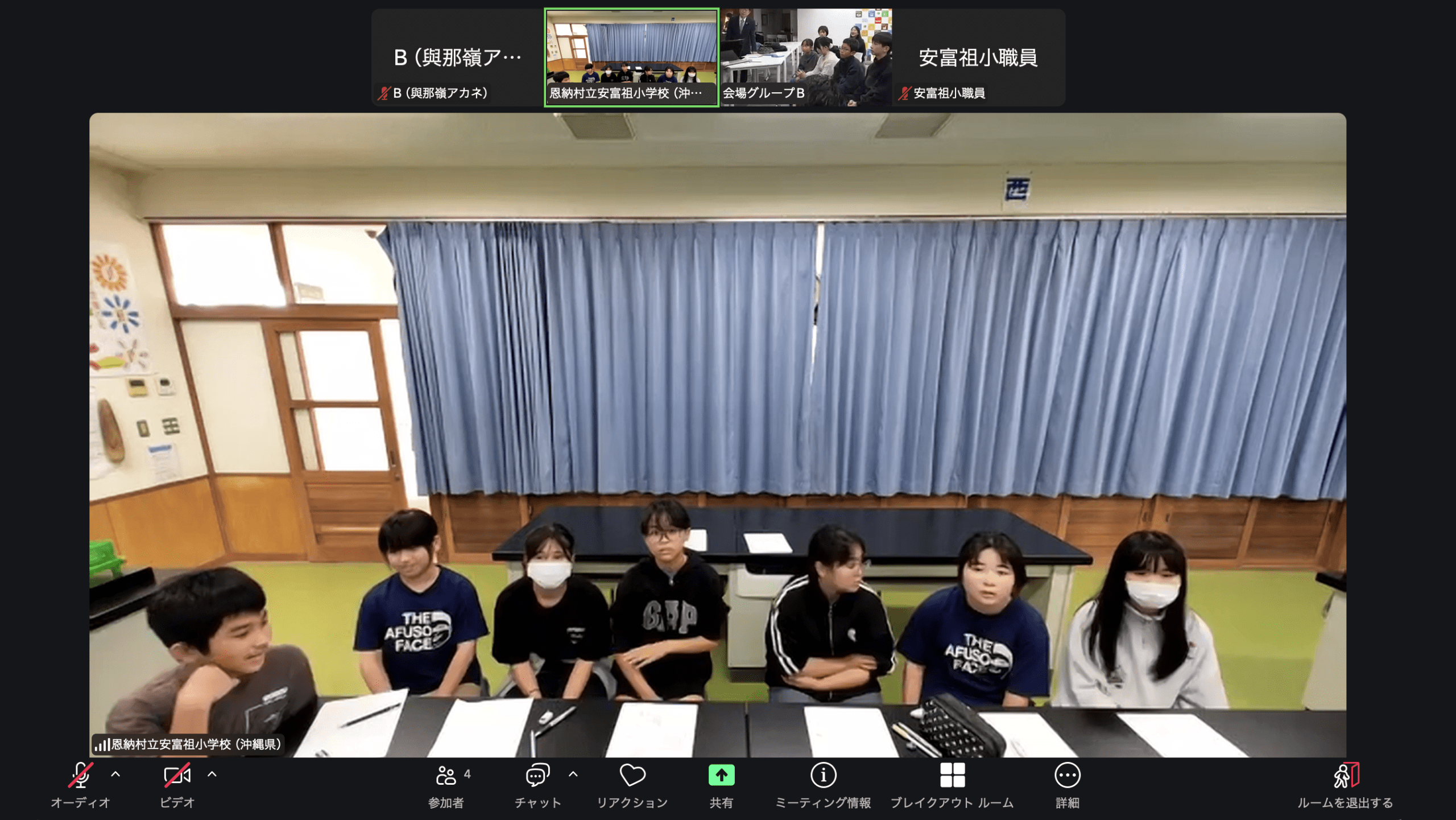また本イベントの後半では、長野県と交流連携協定を締結している沖縄県の小中高学生3団体とのオンライン交流会が実施されました。沖縄県の学生もSDGsに関する取組発表を行い、互いの取組に対する質問を通して、それぞれの地域が持つ課題や取組の意義への理解を深めました。