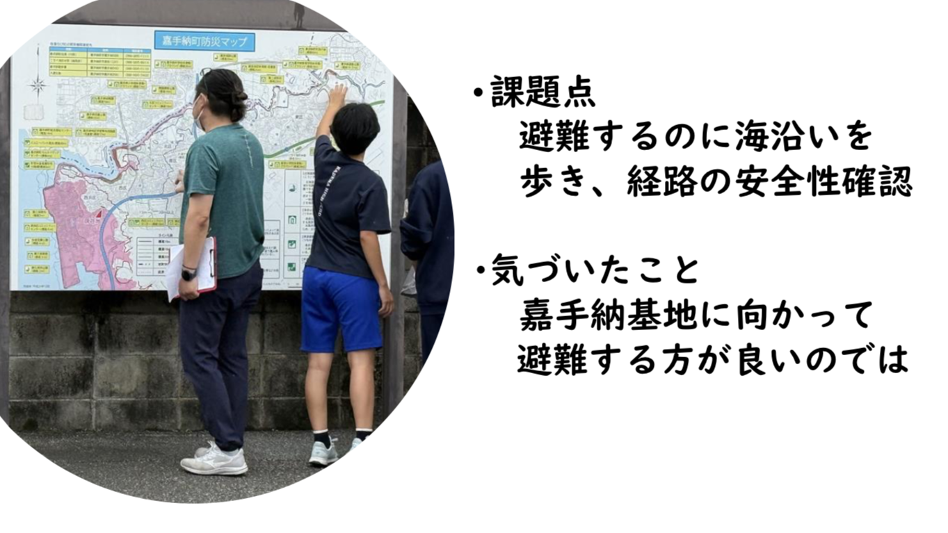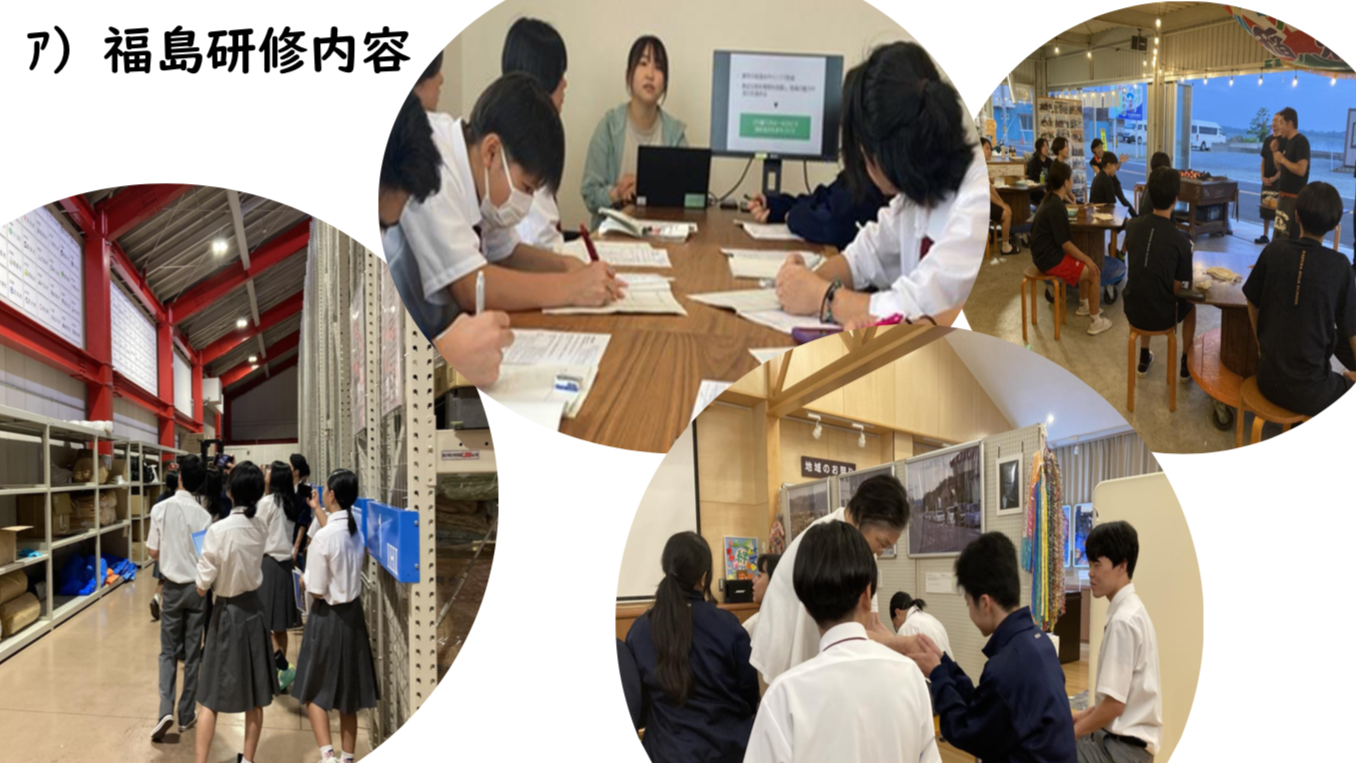 ⑥防災学習の一環で、福島県研修旅行や地域との連携した防災学習に取り組む。